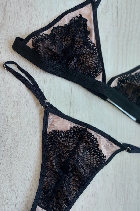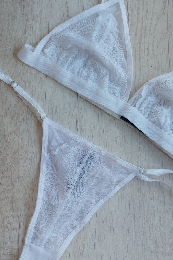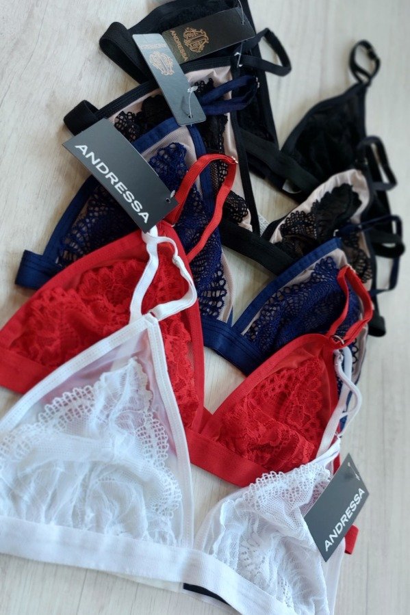 TRIÁNGULO ESTILO BRALETTE SIN ARMADO DE TUL DE LYCRA Y PUNTILLA.